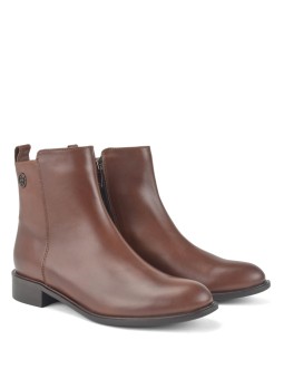 Brązowe botki wykonane ze skóry licowej. Wewnątrz wyściółka z delikatnego polaru. Model posiada poręczne suwaki ułatwiające ściąganie i zakładanie obuwia. Klasyczny i niezwykle uniwersalny fason, który będzie stanowić elegancką bazę dla wielu różnych stylizacji: prostych jeansów, plisowanej...