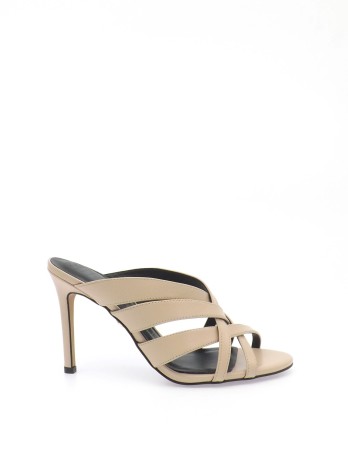 Beżowe sandały wykonane ze skóry lakierowanej. Wewnątrz delikatna, skórzana wyściółka w neutralnym odcieniu. Model z zabudowaną piętą i odkrytymi palcami stanowi eleganckie uzupełnienie dla wiosennych i letnich stylizacji koktajlowych. Sandały na wyższej szpilce posiadają subtelny pasek z...