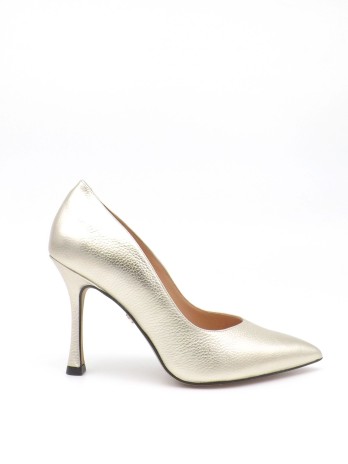 Czółenka w kolorze platynowym o metalicznym połysku wykonane ze skóry licowej. Wewnątrz skórzana wyściółka. Spiczasty nosek oraz delikatnie poszerzany obcas nadają temu modelowi eleganckiego szyku. Stylowa propozycja, która sprawdzi się w wielu formalnych i wizytowych sytuacjach. Doskonale...