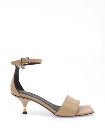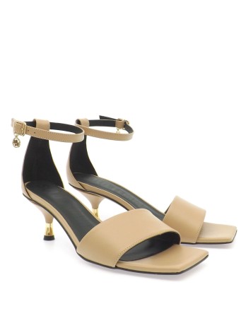 Beżowe sandały wykonane ze skóry licowej. Wewnątrz delikatna, skórzana wyściółka w neutralnym odcieniu. Model posiada zabudowaną piętę oraz niewysoki, stabilny obcas. Sandały z szykowną, złotą ozdobą to elegancka i niezwykle oryginalna propozycja. Doskonale uzupełni klasyczne i minimalistyczne...