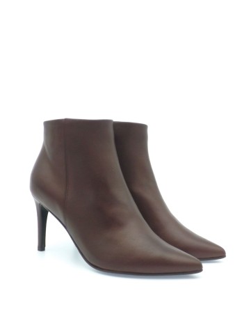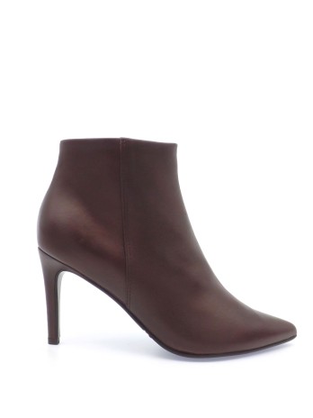 Bordowe botki wykonane ze skóry licowej. W modelu zastosowano poręczne suwaki, które ułatwiają zakładanie i zdejmowanie obuwia. Minimalistyczny fason z cholewką za kostkę, wysokim obcasem i zwężanym noskiem to stylowa oraz ponadczasowa propozycja, która uzupełni wiele wizytowych i biznesowych...