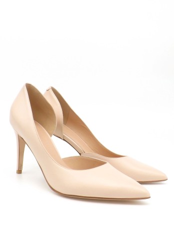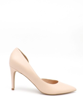 Jasnobeżowe czółenka wykonane ze skóry licowej. Wewnątrz delikatna, skórzana wyściółka. Spiczasty nosek, stylowe wycięcia z boku oraz niższa, cienka szpilka dodają temu modelowi smukłości i eleganckiego szyku. Czółenka z wycięciem na śródstopiu to propozycja, która sprawdzi się w wielu formalnych...