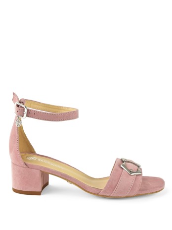 Jasnoróżowe sandały wykonane ze skóry welurowej. Wewnątrz miękka, skórzana wyściółka w neutralnym odcieniu. Model z zabudowaną piętą oraz odsłoniętymi palcami to propozycja, która doskonale sprawdzi się zarówno w codziennych, jak i wizytowych sytuacjach. Klasyczne sandały z szykowną ozdobą...