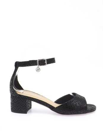 Czarne sandały wykonane ze skóry tłoczonej. Wewnątrz miękka, skórzana wyściółka w neutralnym odcieniu. Model z zabudowaną piętą oraz odsłoniętymi palcami to propozycja, która doskonale sprawdzi się zarówno w codziennych, jak i wizytowych sytuacjach. Klasyczne sandały posiadają niewysoki, słupkowy...