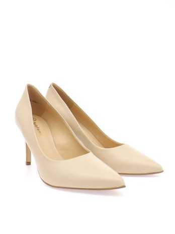 Beżowe czółenka ze skóry licowej. Wewnątrz delikatna, skórzana wyściółka w neutralnym odcieniu oraz wkładki ,,memory" zapewniające komfortowe dopasowanie obuwia do stopy.  Model z niższym, smukłym obcasem oraz delikatnie zwężanymi noskami to elegancki i niezwykle stylowy wybór. Szpilki można...