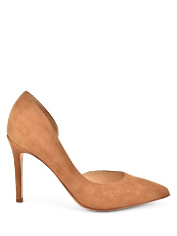 Czerwone czółenka wykonane ze skóry welurowej. Wewnątrz delikatna, skórzana wyściółka. Spiczasty nosek, stylowe wycięcia z boku oraz cienka, smukła szpilka dodają temu modelowi lekkości i eleganckiego szyku. Czółenka z wycięciem na śródstopiu to propozycja, która sprawdzi się w wielu formalnych i wizytowych sytuacjach. Szpilki w kolorze czerwonym stylowo uzupełnią zestawy z koktajlową sukienką, zwiewną spódnicą oraz dopasowanymi spodniami.