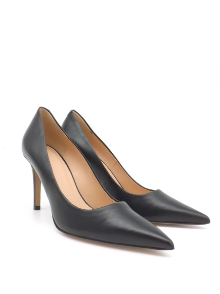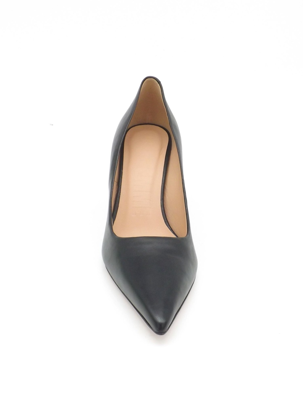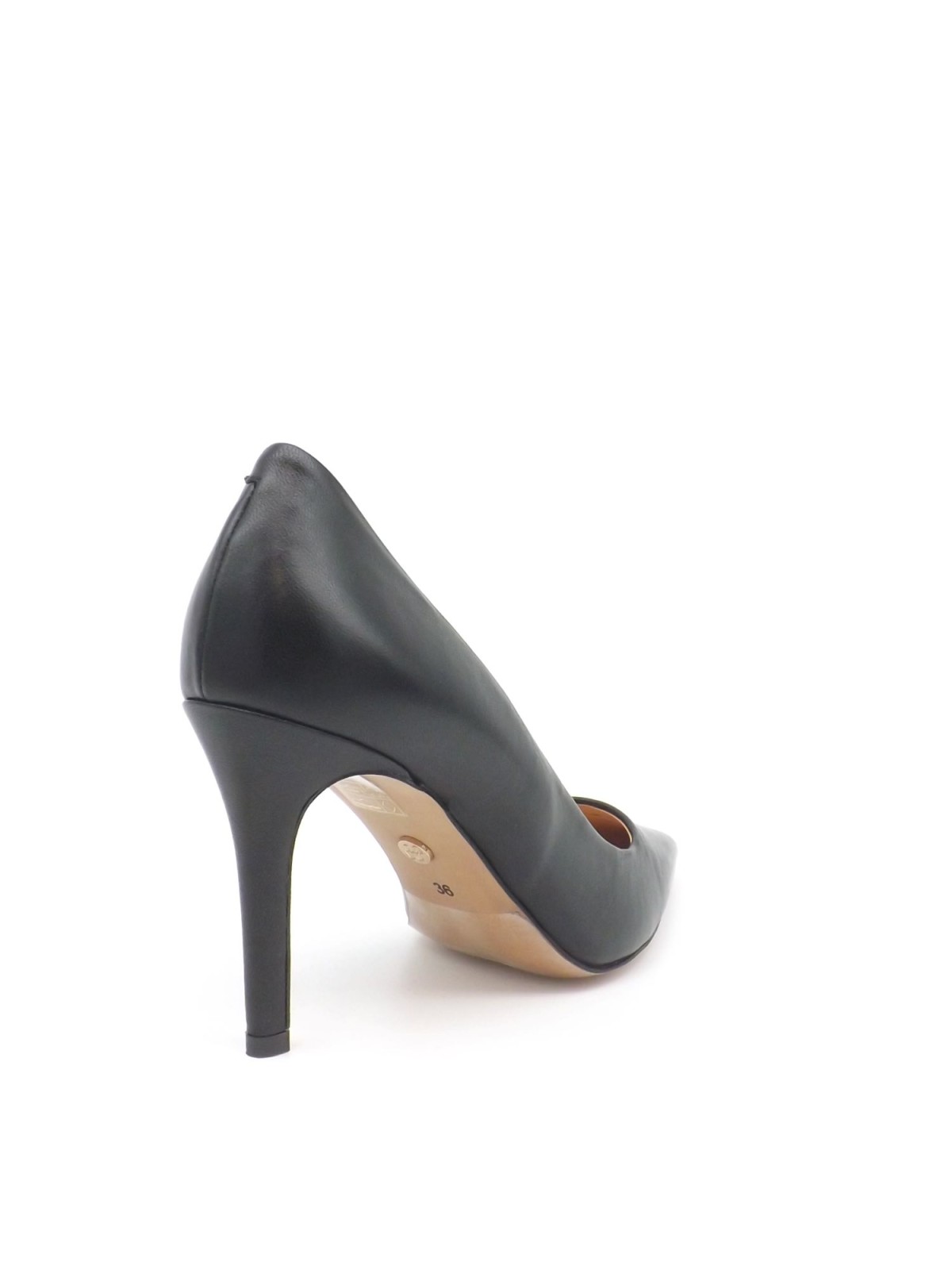 Klasyczne szpilki wykonane z czarnej skóry licowej to ponadczasowy model, który można dopasować do każdej stylizacji. Wewnątrz delikatna, skórzana wyściółka w neutralnym odcieniu oraz wkładki ,,memory" zapewniające komfortowe dopasowanie obuwia do stopy. Buty posiadają elegancki, subtelny obcas o wysokości 8,5 cm oraz dłuższy, zwężany nosek.