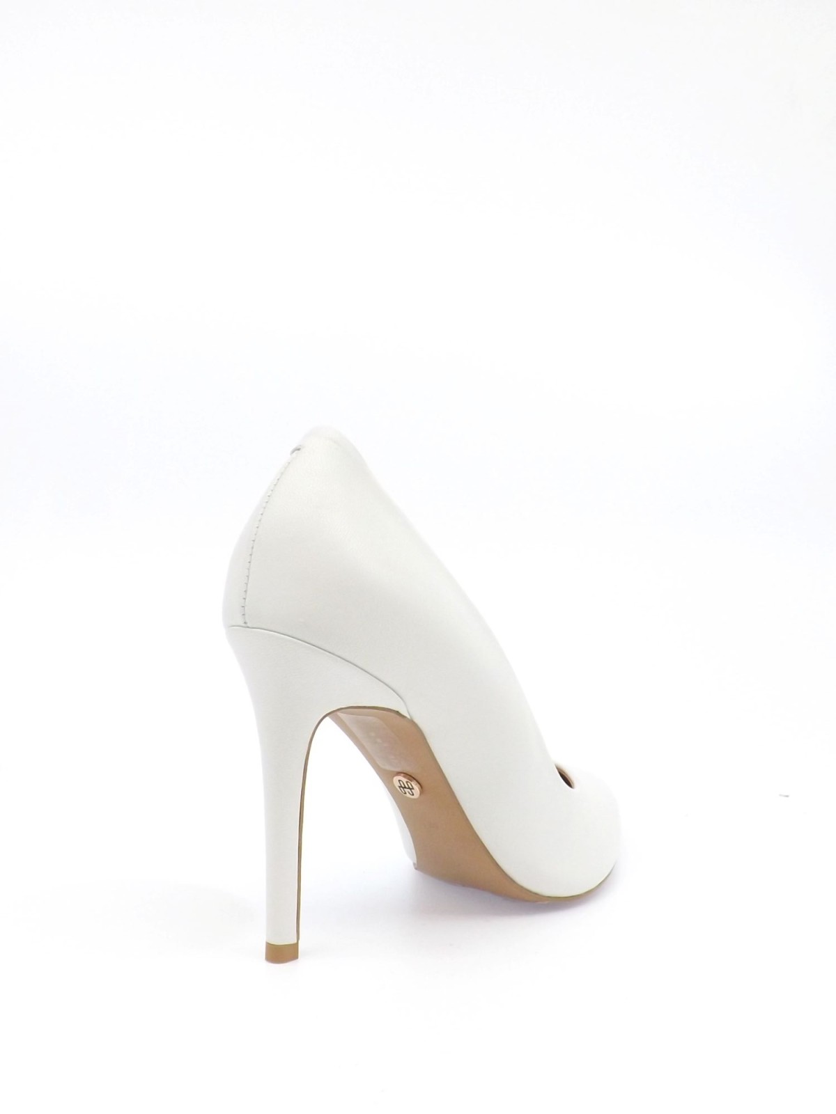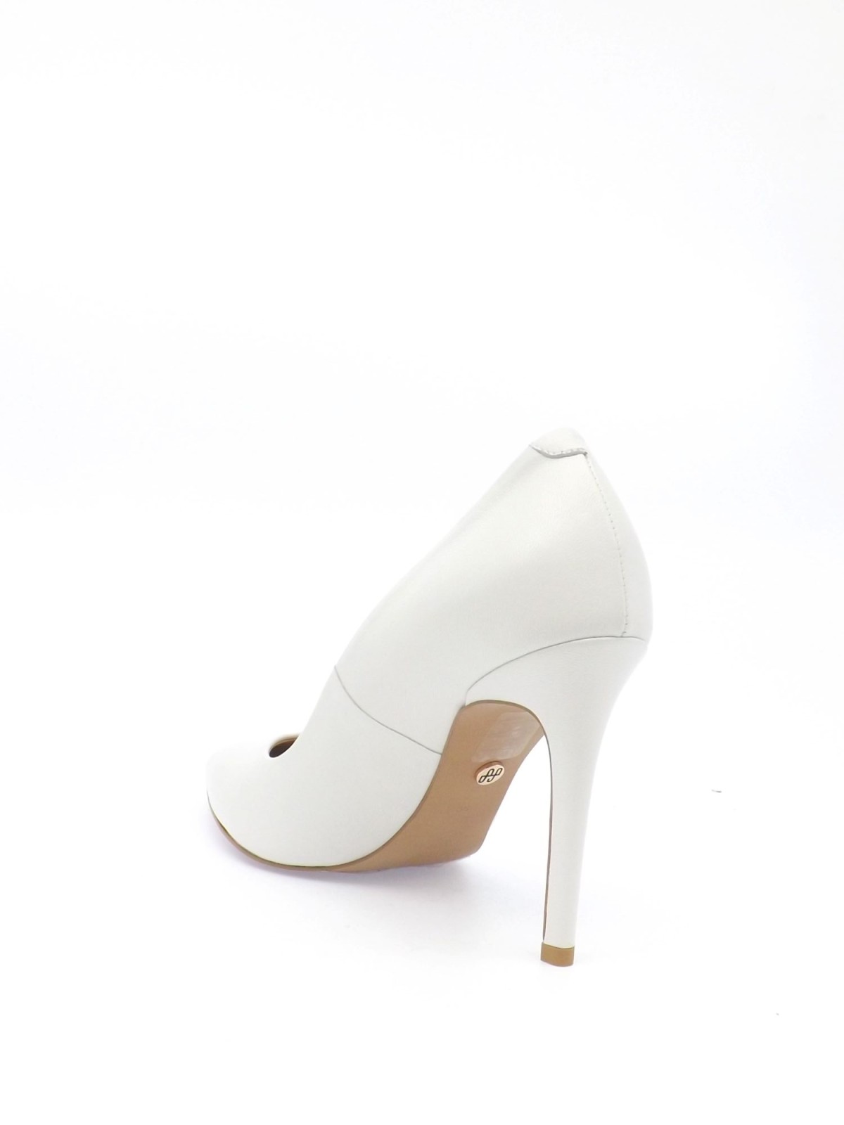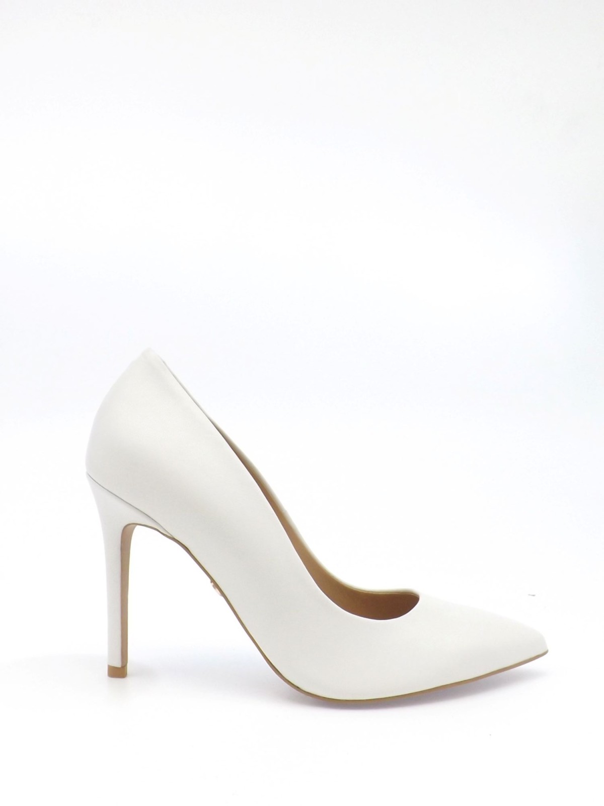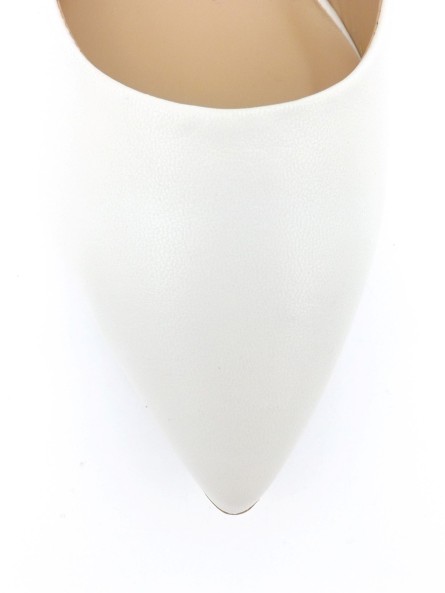 Białe czółenka wykonane ze skóry licowej. Wewnątrz delikatna, skórzana wyściółka w neutralnym odcieniu oraz wkładki ,,memory" zapewniające komfortowe dopasowanie obuwia do stopy. Model ze smukłym obcasem oraz delikatnie zwężanymi noskami to elegancki i niezwykle stylowy wybór. Szpilki można dopasować do wizytowej sukienki, koktajlowej spódnicy oraz casualowego, damskiego garnituru. Ponadczasowy fason i efektowne uzupełnienie każdej stylizacji.