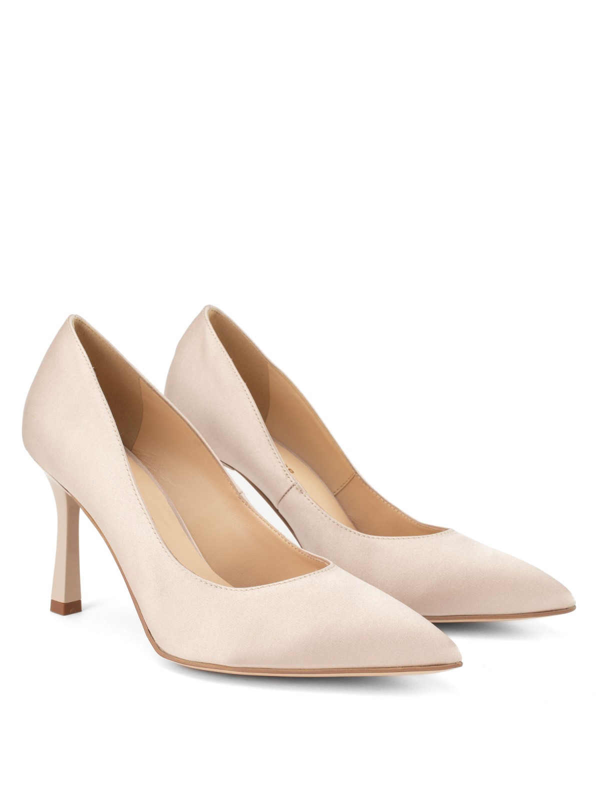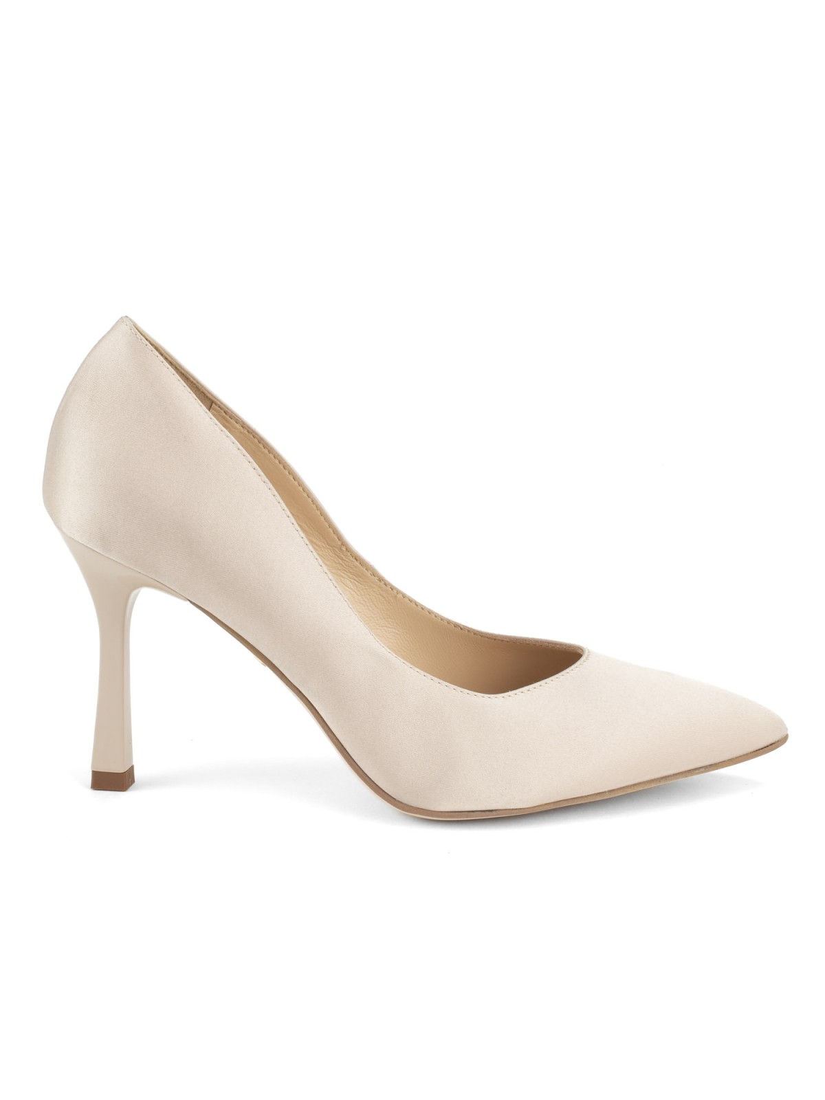Beżowe czółenka wykonane z błyszczącej satyny. Wewnątrz delikatna, skórzana wyściółka w neutralnym odcieniu. Spiczasty nosek oraz delikatnie poszerzany obcas nadają temu modelowi eleganckiego szyku. Satynowe czółenka to stylowa propozycja, która sprawdzi się w wielu formalnych i wizytowych sytuacjach. Doskonale uzupełnią stylizacje z koktajlową sukienką, zwiewną spódnicą oraz eleganckim, damskim garniturem.