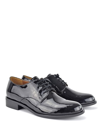 Klasyczne, sznurowane półbuty wykonane ze skóry lakierowanej. Model z naturalną, skórzaną wyściółką zapewnia świetne dopasowanie oraz wysoki komfort użytkowania. Czarne lakierki można dopasować do plisowanej spódnicy, casualowych jeansów lub eleganckich cygaretek. Sznurowane półbuty z połyskiem...