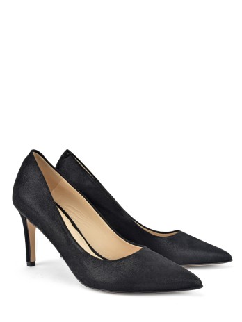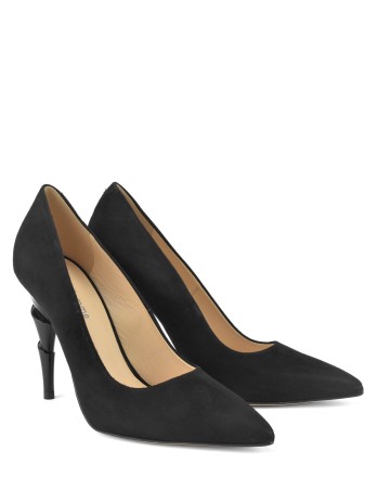 Czółenka w kolorze czarnym wykonane ze skóry welurowej. Słupkowe obcasy gwarantują stabilność i wygodę, a spiczaste noski nadają butom eleganckiej subtelności. Wewnątrz miękka wyściółka z delikatnej, koziej skóry. Zastosowanie wkładki typu memory gwarantuje świetne dopasowanie oraz wysoką wygodę...