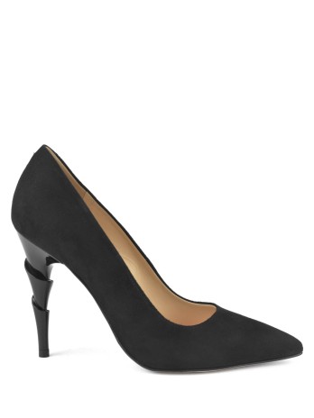 Czarne czółenka wykonane ze skóry welurowej. Wewnątrz delikatna, skórzana wyściółka oraz dopasowująca się do stopy wkładka typu memory. W prostym modelu ze zwężanymi noskami zastosowano fantazyjny, smukły obcas. Oryginalny fason będący połączeniem gustownej klasyki oraz nowoczesnego designu....