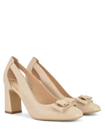 Beżowe czółenka wykonane ze skóry licowej. Wewnątrz delikatna, skórzana wyściółka w neutralnym odcieniu oraz wkładki ,,memory" zapewniające komfortowe dopasowanie obuwia do stopy. Model z 8,5 centymetrowym, smukłym obcasem oraz delikatnie zwężanymi noskami to elegancki i niezwykle stylowy wybór....