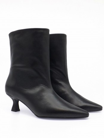 Botki wykonane ze skóry licowej. Wewnątrz ocieplenie z delikatnego polaru. Model z szeroką cholewką oraz stabilnym obcasem w kształcie kaczuszki zapewniają komfort i wygodę, natomiast delikatnie zwężane noski nadają elegancki charakter. Botki w tym fasonie to ponadczasowa propozycja, która...