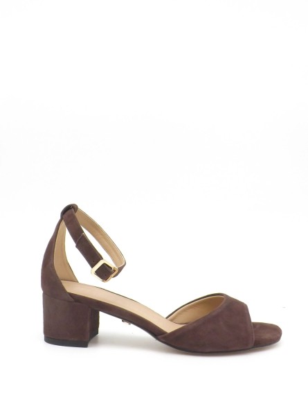 Brązowe sandały wykonane ze skóry welurowej. Wewnątrz miękka, skórzana wyściółka w neutralnym odcieniu. Model z zabudowaną piętą oraz odsłoniętymi palcami to propozycja, która doskonale sprawdzi się zarówno w codziennych, jak i wizytowych sytuacjach. Klasyczne sandały posiadają niewysoki, słupkowy obcas oraz delikatny pasek zapinany przy kostce. Wygodny i stylowy wybór, który można dopasować do jeansowych spodni, zwiewnej sukienki oraz dopasowanej spódnicy.
